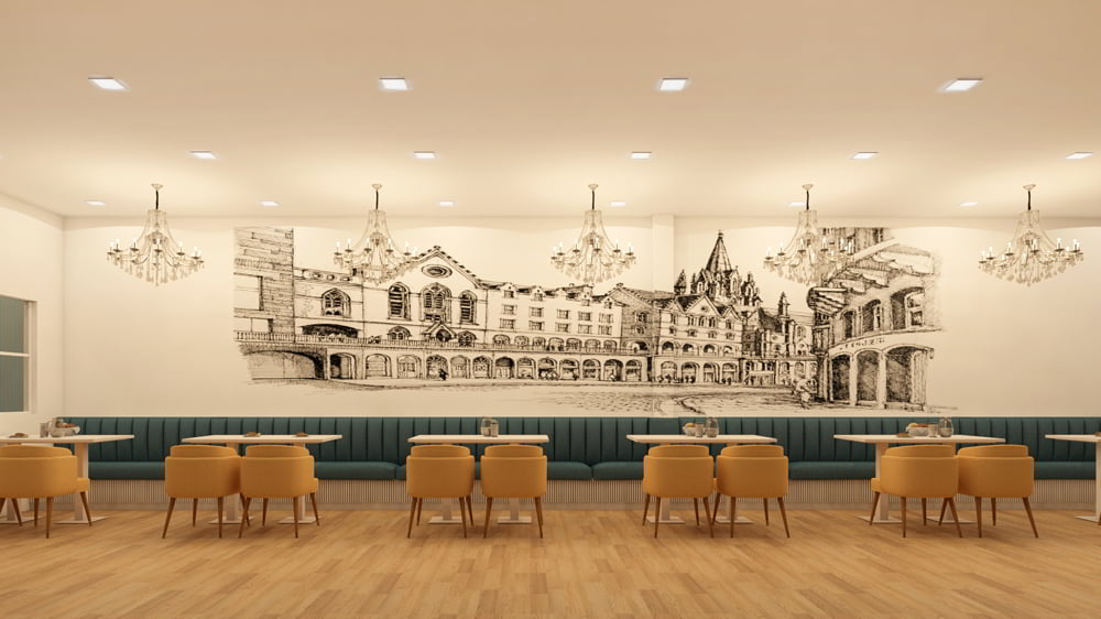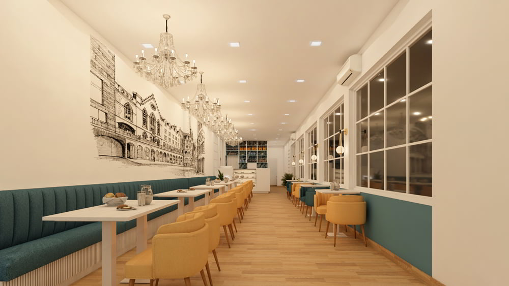 The Southern Spice Café, a masterpiece of design by January Designs, immerses you in a culinary experience where every detail reflects meticulous craftsmanship. The harmonious blend of white and blue hues creates a serene yet vibrant ambiance, adorned with intricate ornamental elements that exude opulence and sophistication. In essence, January Designs has woven together a tapestry of style and substance at the Southern Spice Café, where the artistry of design and the pleasures of gastronomy converge to create an unforgettable dining experience.